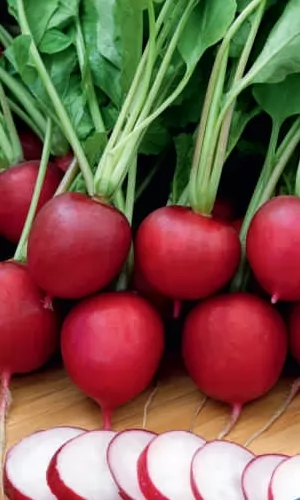 Раннеспелый (20-25 дней) сорт для выращивания в открытом и защищённом грунте. Корнеплоды округлые, гладкие, ярко-красные, массой 25-35 г. Мякоть белая, плотная, сочная, слабоострая. Урожайность 2,5 кг/м2.